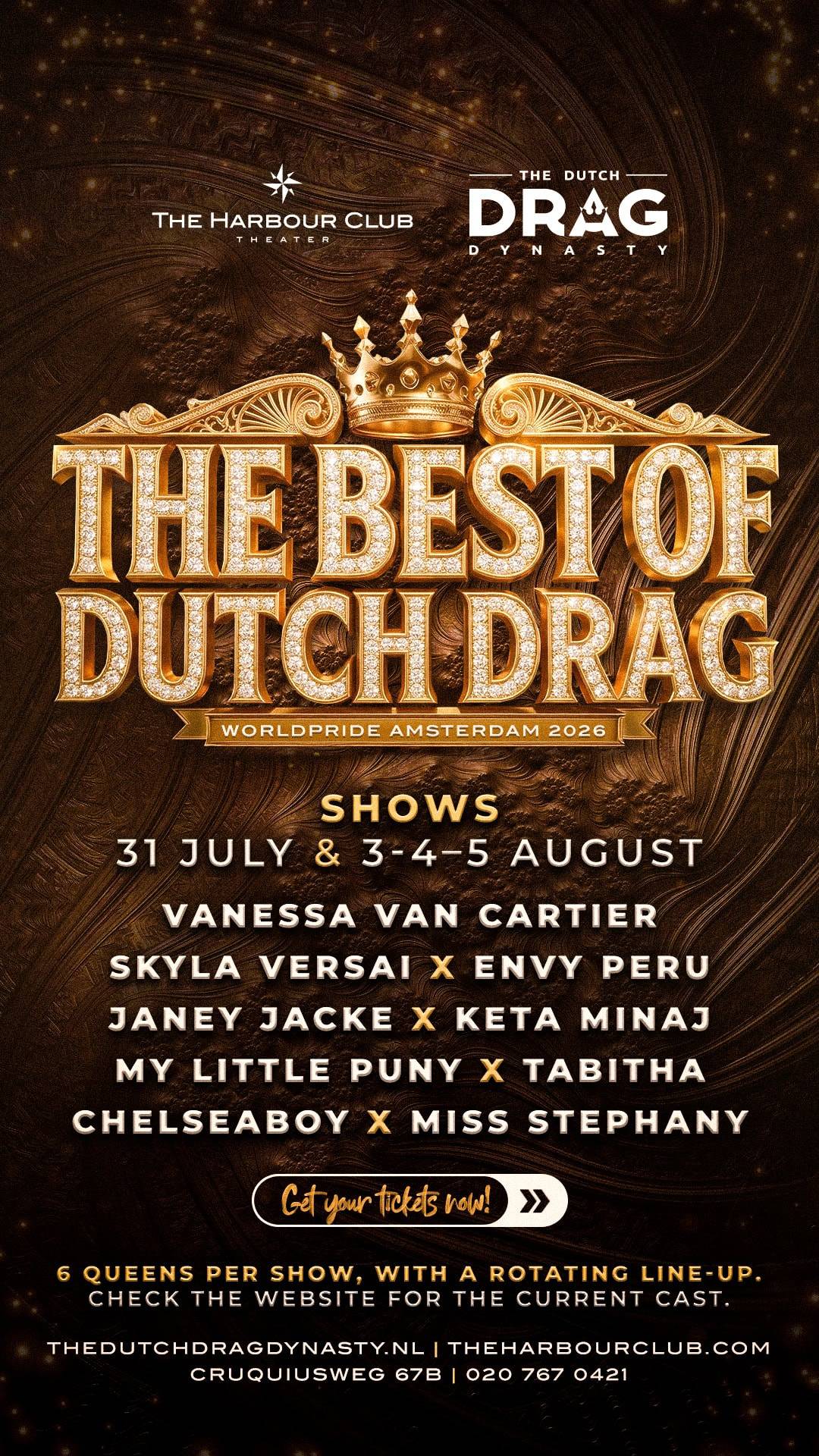 An exclusive WorldPride production by The Dutch Drag Dynasty, staged at The Harbour Club Theater in Amsterdam